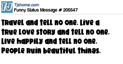 X says Travel and tell no one. Live a true love story and tell no one. Live happily and tell no one. People ruin beautiful things.