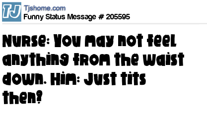 X says Nurse: You may not feel anything from the waist down. Him: Just tits then?