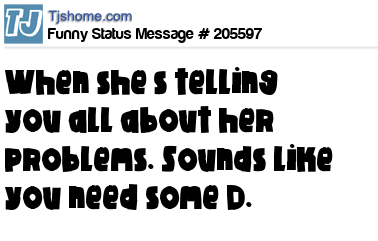 X says When she’s telling you all about her problems. Sounds like you need some D.