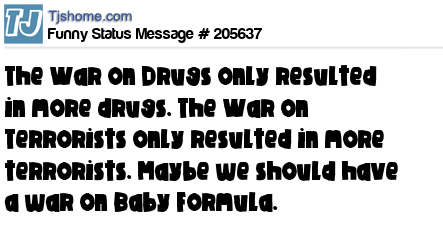 X says The War on Drugs only resulted in more drugs. The War on Terrorists only resulted in more terrorists. Maybe we should have a war on Baby Formula.