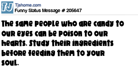 X says The same people who are candy to our eyes can be poison to our hearts. Study their ingredients before feeding them to your soul.