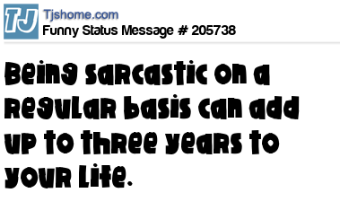 - # 209635 I read somewhere that being sarcastic on a daily basis can add up to three years to your life. If that's true, I'm gonna live forever.