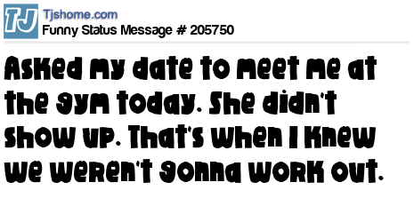 X says Asked my date to meet me at the gym today. She didn't show up. That's when I knew we weren't gonna work out.