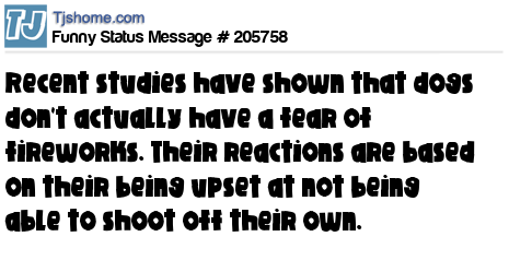 X says Recent studies have shown that dogs don't actually have a fear of fireworks. Their reactions are based on their being upset at not being able to shoot off their own.