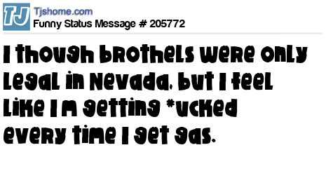 X says I though brothels were only legal in Nevada, but I feel like I’m getting *ucked every time I get gas.