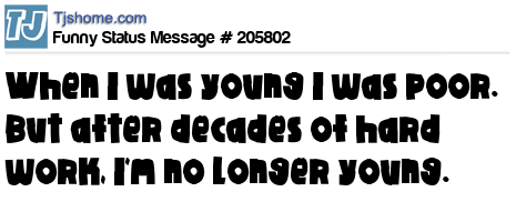 - # 209455 When I was young, I was poor. But after years of hard work, I am no longer young.
