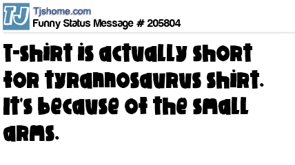 X says T-shirt is actually short for tyrannosaurus shirt. It's because of the small arms.