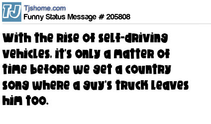 - # 178752 With the rise in self-driving vehicles, eventually there will a Country and Western song about your truck leaving you too.