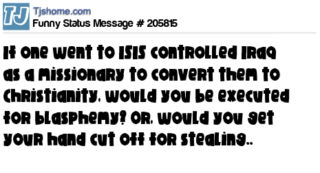 X is If one went to ISIS controlled Iraq as a missionary to convert them to Christianity, would you be executed for blasphemy? Or, would you get your hand cut off for stealing..