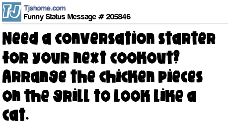 X says Need a conversation starter for your next cookout? Arrange the chicken pieces on the grill to look like a cat.