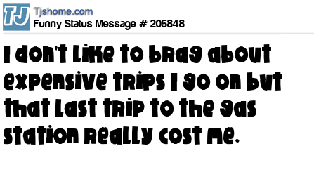 X is I don't like to brag about expensive trips I go on but that last trip to the gas station really cost me.