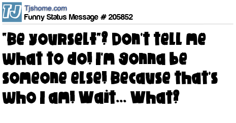 X says "Be yourself"? Don't tell me what to do! I'm gonna be someone else! Because that's who I am! Wait... What?