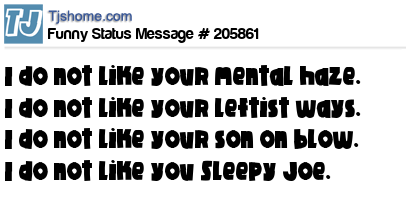 X says I do not like your mental haze. I do not like your leftist ways. I do not like your son on blow. I do not like you Sleepy Joe.