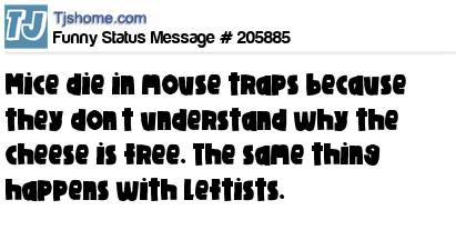 X says Mice die in mouse traps because they don’t understand why the cheese is free. The same thing happens with leftists.