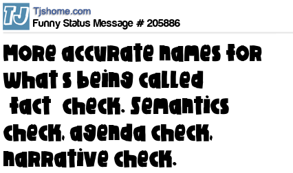 X says More accurate names for what’s being called “fact” check. Semantics check, agenda check, narrative check.