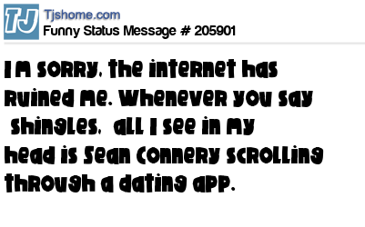 X says I’m sorry, the internet has ruined me. Whenever you say “shingles,” all I see in my head is Sean Connery scrolling through a dating app.