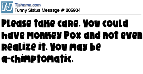 X says Please take care. You could have Monkey Pox and not even realize it. You may be a-chimptomatic.