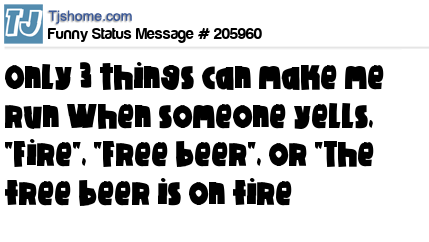 X says Only 3 things can make me run When someone yells, "Fire", "Free beer", or "The free beer is on fire”