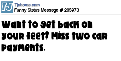 - # 15004 The best way to get back on your feet, is to miss a car payment.
