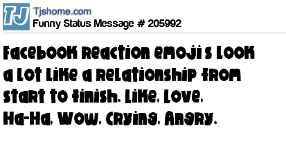 - # 208876 It's funny how the order of Facebook's reaction Emojis are most relationships from the beginning to the end.