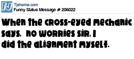 X says When the cross-eyed mechanic says, “no worries sir, I did the alignment myself.”