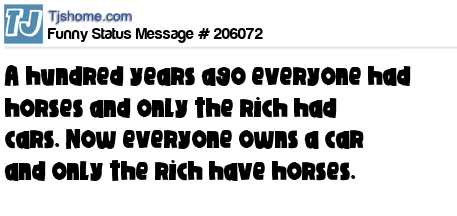 X says A hundred years ago everyone had horses and only the rich had cars. Now everyone owns a car and only the rich have horses.