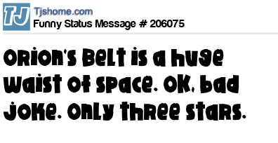 X says Orion's Belt is a huge waist of space. OK, bad joke. Only three stars.