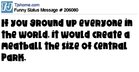 X says If you ground up everyone in the world, it would create a meatball the size of Central Park.