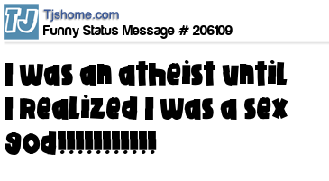 X is I was an atheist until I realized I was a sex god!!!!!!!!!!!