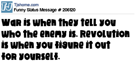 X says War is when they tell you who the enemy is. Revolution is when you figure it out for yourself.