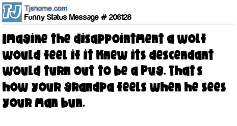 - # 189874 Imagine the disappointment if a wolf knew it’s descendant would be a pug. That’s how your grandpa feels when he sees your man bun.