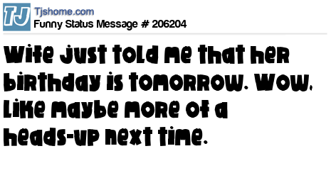 X says Wife just told me that her birthday is tomorrow. Wow, like maybe more of a heads-up next time.