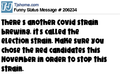 X says There s another Covid strain brewing, it’s called the election strain. Make sure you chose the red candidates this November in order to stop this strain.