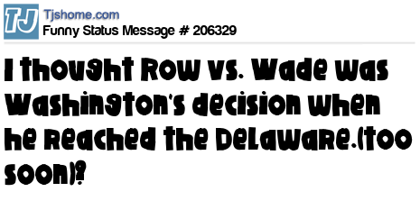 X says I thought Row vs. Wade was Washington's decision when he reached the Delaware.(too soon)?