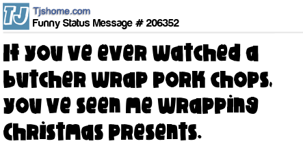 - # 195834 If you've ever watched a butcher wrap pork chops, you've seen me wrapping Christmas presents.