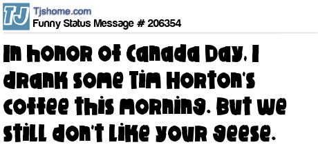 X says In honor of Canada Day, I drank some Tim Horton's coffee this morning. But we still don't like your geese.