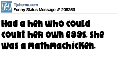 X says Had a hen who could count her own eggs, she was a mathmachicken.