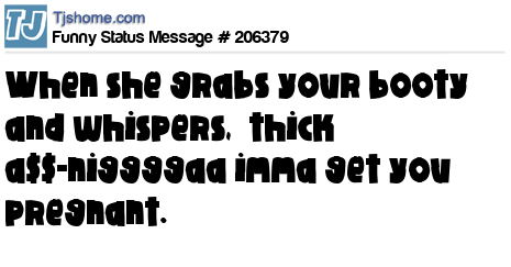 X says When she grabs your booty and whispers, “thick a$$-niggggaa imma get you pregnant.”