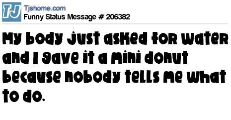 X says My body just asked for water and I gave it a mini donut because nobody tells me what to do.