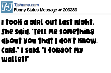 X is I took a girl out last night. She said, "Tell me something about you that I don't know, Carl." I said, "I forgot my wallet!"