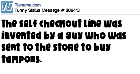 - # 183809 The self checkout line was invented for a guy who was sent to the store to buy tampons.