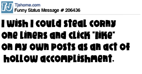 X says I wish I could steal corny one liners and click "Iike" on my own posts as an act of hollow accomplishment.
