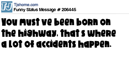 - # 21995 You must been born on the freeway .cuz that's where most accidents happen.