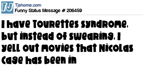 X says I have Tourettes syndrome, but instead of swearing, I yell out movies that Nicolas Cage has been in