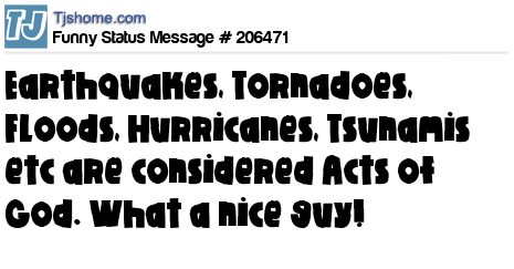 X says Earthquakes, Tornadoes, Floods, Hurricanes, Tsunamis etc are considered Acts of God. What a nice guy!