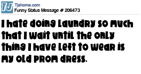 - # 206497 I hate doing laundry so much that I wait until the only thing I have left to wear is my very old prom dress.