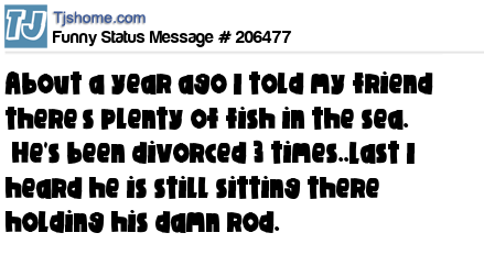- # 203124 About a year ago I told my friend there’s plenty of fish in the sea. He's been divorced 3 times... Last I heard he is still sitting there holding his rod.