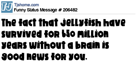 - # 137277 The fact that jellyfish have survived for 650 million years despite not having brains is great news for stupid people.