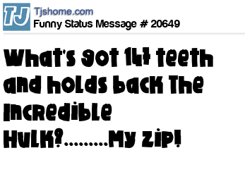 - # 153427 What has 32 teeth and holds back the Incredible Hulk??? MY ZIPPER!!!!