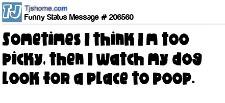 - # 167016 Sometimes I think I’m too picky. Then I watch my dog look for a place to poop.